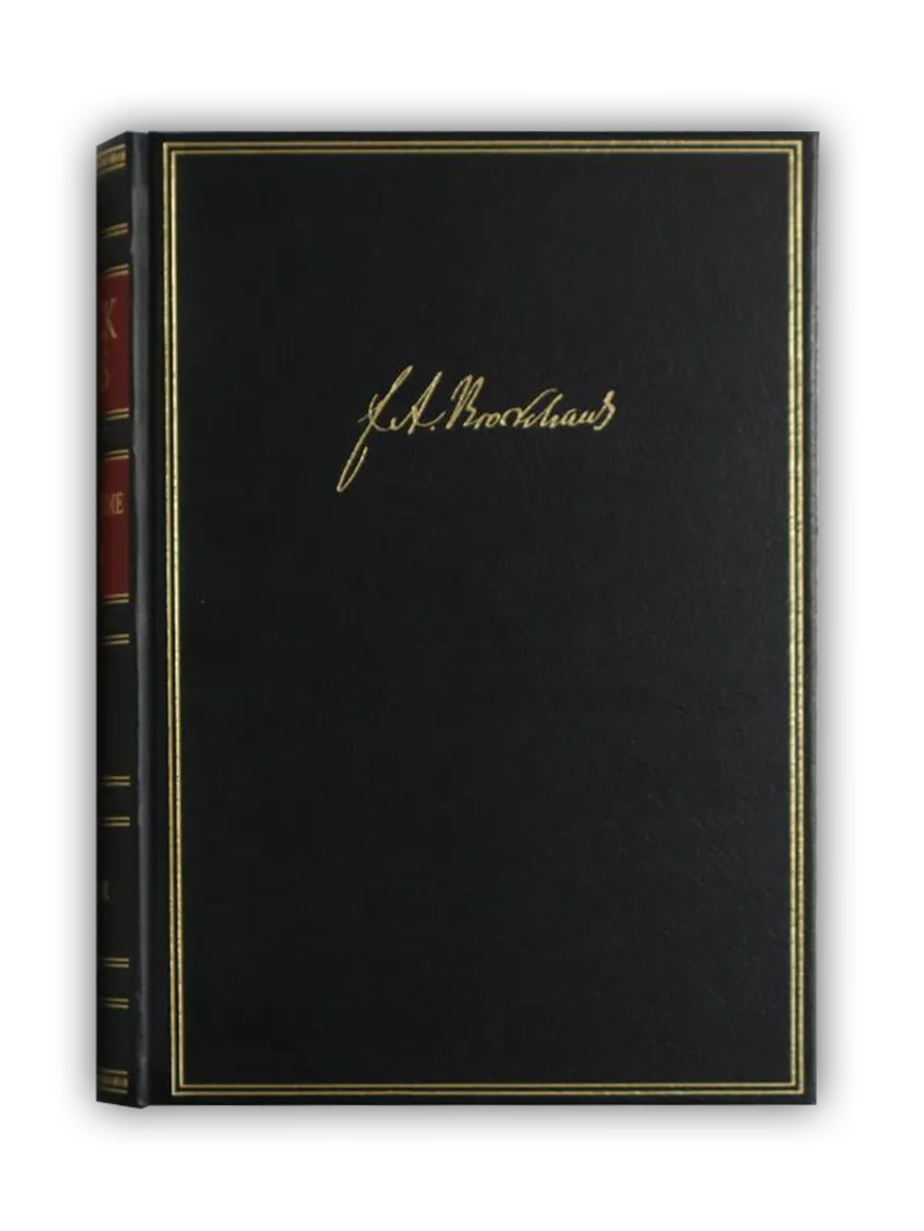 Nur im direkten Vertrieb ist die exklusive Ausgabe von Bibliophil erhältlich. Der Bucheinband besteht aus Cabra-Leder, hat Bünden auf dem Rücken, ein rotes Rückenschild mit Goldprägungen, einen 23-karätigen Kopfschnitt aus Gold und die Signatur des Verlagsgründers F. A. Brockhaus ist auf dem vorderen Buchdeckel goldgeprägt. Etwa 24,5 x 18 cm groß. Ungefähr 980 Seiten. Zusammen mit der Redaktion von Duden und Genevieve Le Baut haben die Oxford University Press mitgewirkt.